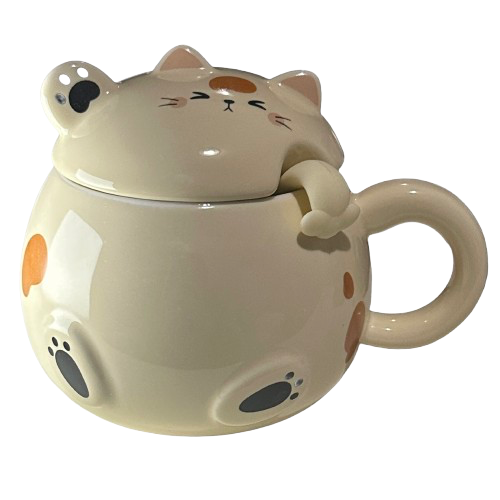 $8.00 15oz Whimsy Cat Mug With Lid And Spoon # MGL08-YL |