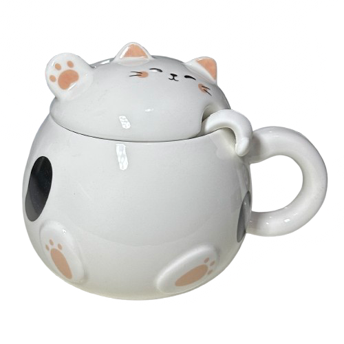 $8.00 15oz White Cat Mug With Lid And Spoon # MGL08-WH |
