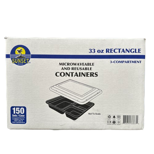 $65.00 Sunset 150 Sets 33oz Rectangle 3 Compartment Container |
