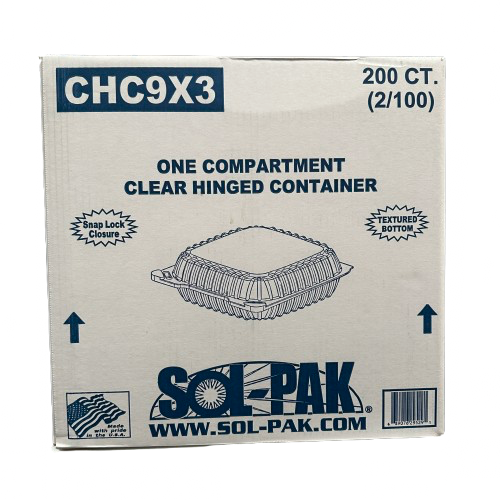 $58.00 Sol-Pak 200ct 9"x3" One Compartment Clear Container # CHC9x3 |