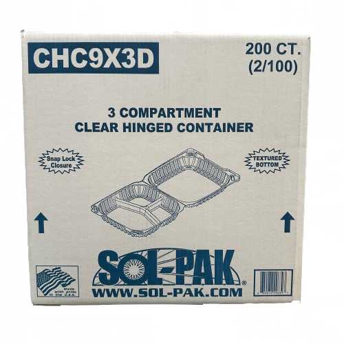 $58.00 Sol-Pak 200ct 3 Compartment Clear Container # CHC9x3D |