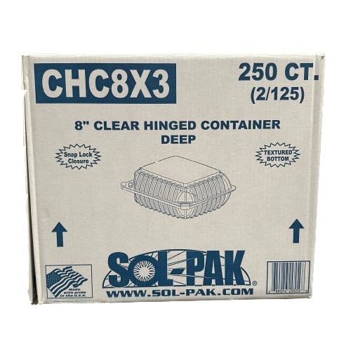 $66.00 Sol-Pak 250ct 8"x3" Clear Container Deep # CHC8x3 |