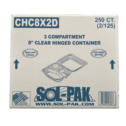 $58.00 Sol-Pak 250ct 8"x2" 3 Compartment Clear Container # CHC8x2D |